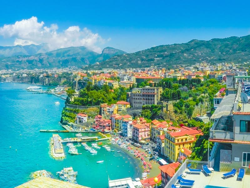 לאחר הביקור, עצירה קצרה לארוחת צהריים ונסיעה לחוף סורנטו. בדרך תוכלו להתרשם מטירה מימי הביניים אשר על שמה נקראת העיירה Castellammare di Stabia. תחזו בחופים הקטנים והקסומים של Vico Equense , בצמחייה הים תיכונית הטיפוסית, מלאה בעצי לימון ותפוז. נעצור בנוף הפנורמי של מטא די סורנטו (Meta di Sorrento) כדי לראות את הנוף הנפלא של המפרץ המשקיף על הים. עצירה בסורנטו לביקור קצר של העיר (כשעה). נעבור בדרך הנופית היפה ביותר של סורנטו: מה שנקרא וילה Comunale מיפי המפרץ, עד Punta Campanella והאי קאפרי, וכמובן נצלם את הנוף מרהיב. משם נחזור בנסיעה לנאפולי.